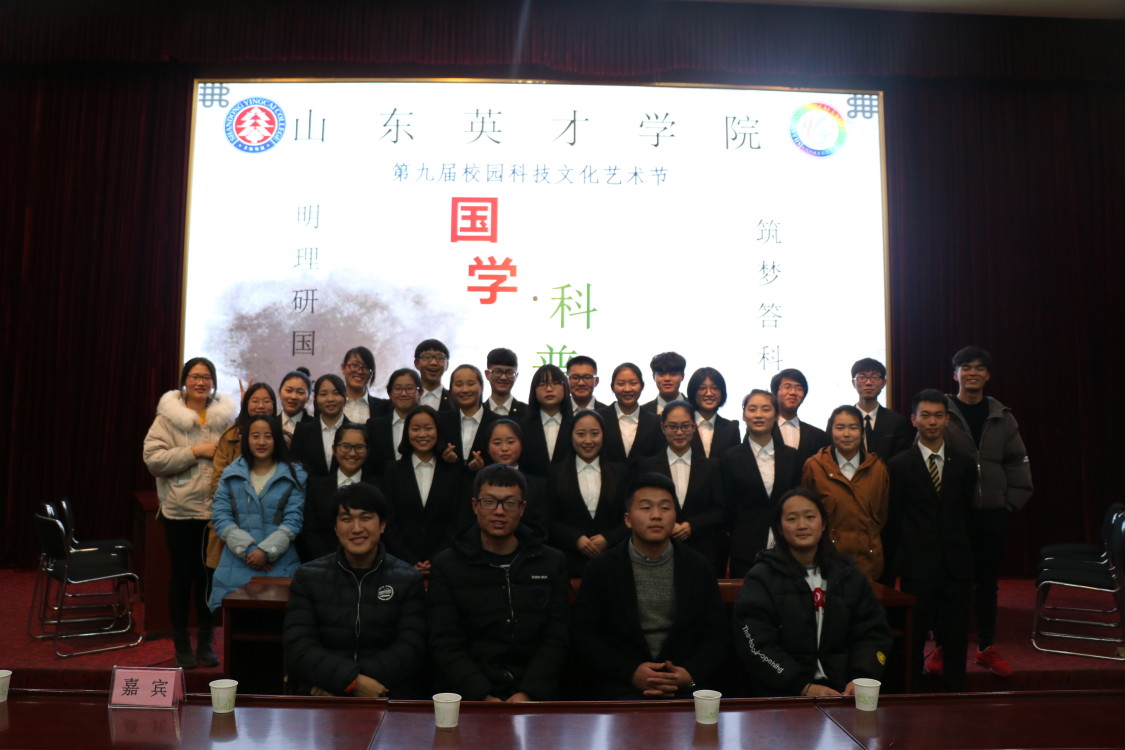 为弘扬中华优秀传统文化,进一步引导大学生了解和学习科学文化知识,丰富学生的第二课堂,培养高尚的个人品德和修养。山东英才学院学生会学习部于2017年12月3日17点30分在学术报告厅举行第九届校园科技文化艺术节国学科普挑战赛小组决赛,出席本次比赛的嘉宾有学前教育学院主席刘龙飞、机电学院主席王政、商学院主席张成、医学院副主席李鑫飞、外国语学院主席朱威、信息工程学院副主席钟旭栋、汽车工程学院主席乔永波、建工主席薛声伟、学生会副主席潘涛、石鹏云、叶莲花,参加本次比赛的有学前教育学院代表团、商学院代表团、校学生代表团。本次比赛由山东英才学院校学生会陈霄主持。