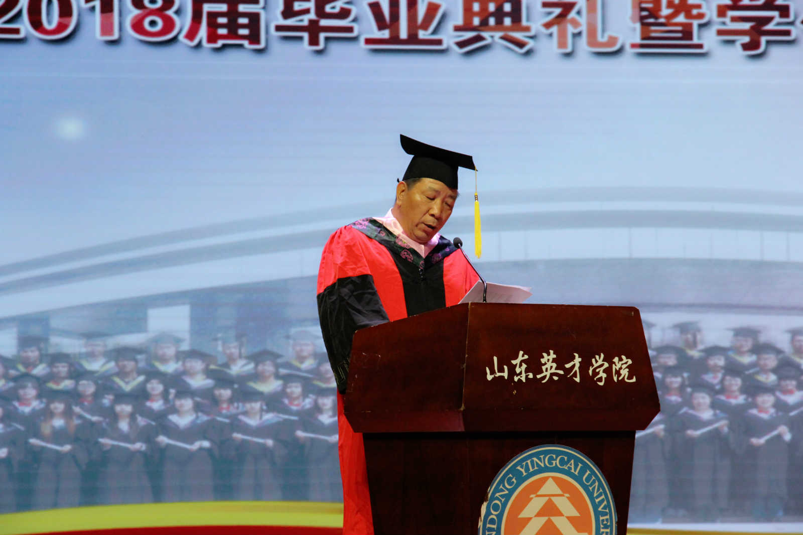 2018年6月24日,我校举行2018届毕业典礼暨学位授予仪式。夏季亭校长、王崇杰书记、常务副校长刘翠兰,副校长梁庆文、帅相志、张宗胜、崔奎勇、张兴虎、杨建军、孙玉香,各职级部门、二级学院负责人以及2018届毕业生、西部计划志愿者共1000多人参加了毕业典礼。